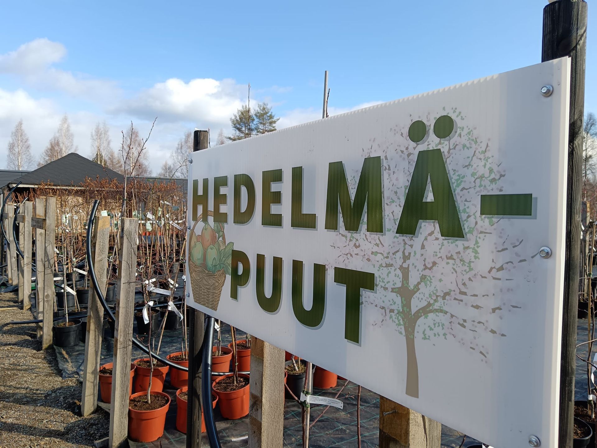 Hedelmäpuista omenat ja päärynät vartamme ja kasvatamme itse. Luumut, kirsikat ja kirsikkaluumut kasvatamme pääasiassa pikkutaimista. Meillä onkin kattava valikoima hedelmäpuita. Pelkästään omenapuita on parisenkymmentä lajiketta. Ja tottakai asiantuntevat vinkit puiden hoitoon ja leikkaamiseen saat taimistomme asiakaspalvelijoilta.