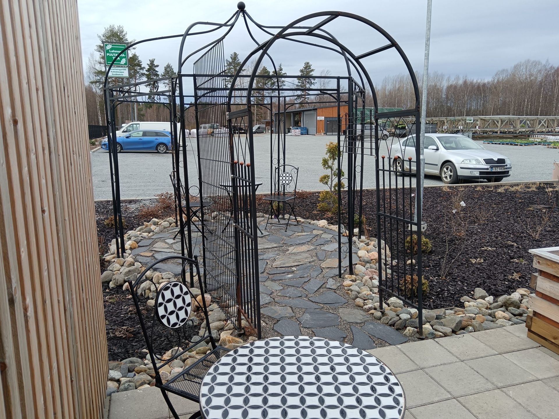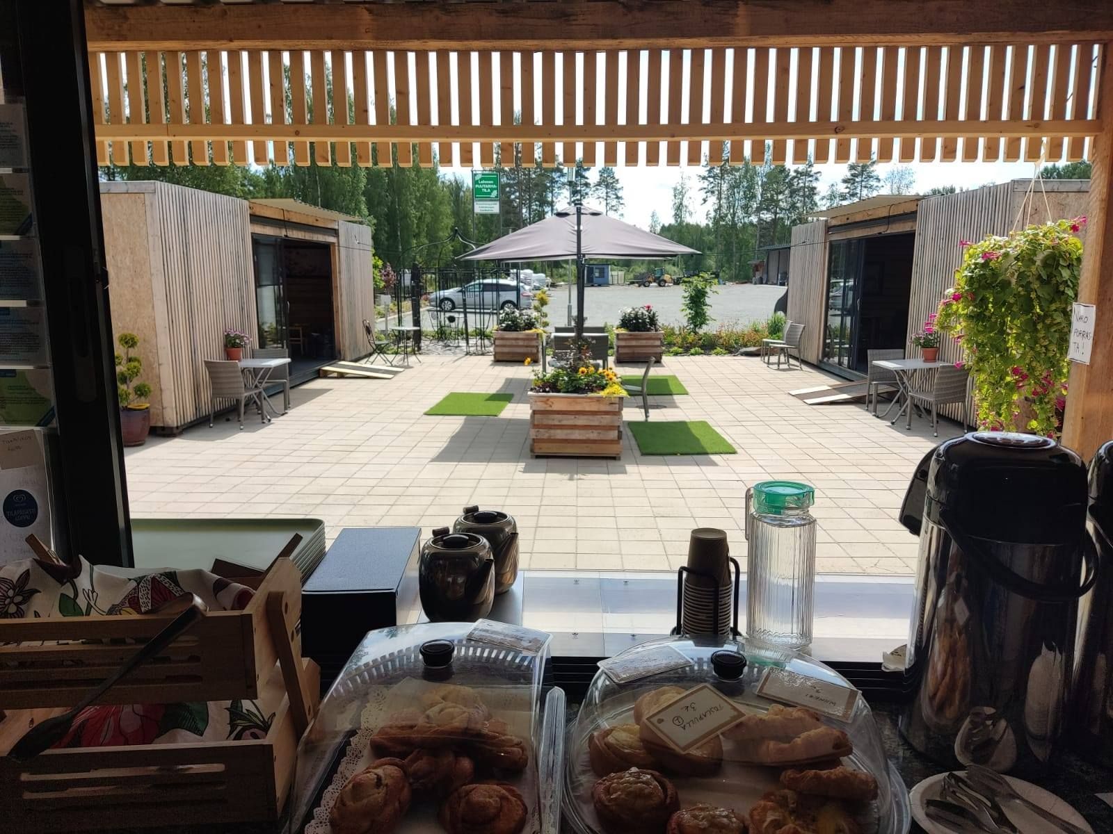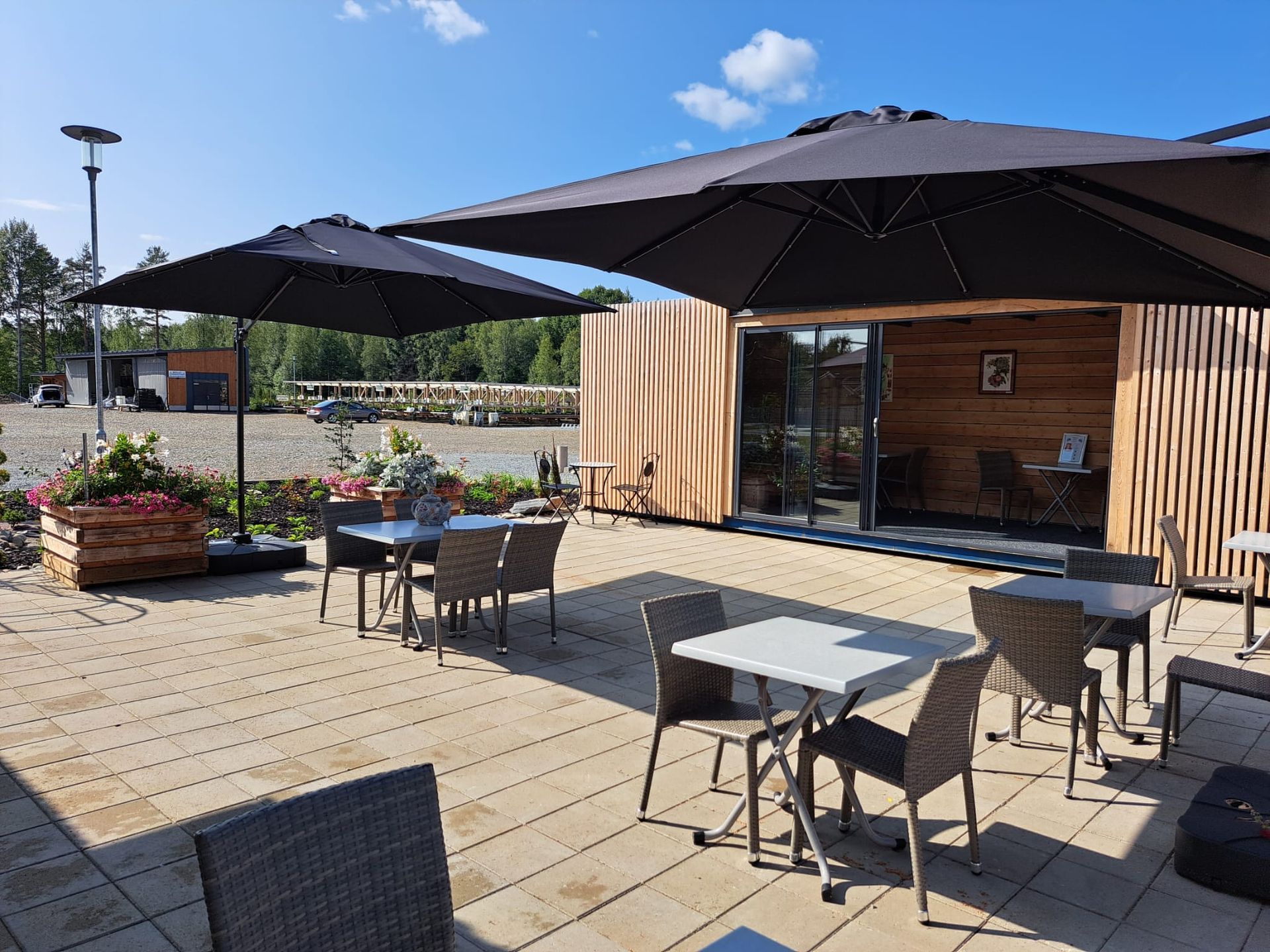 Muuton yhteydessä päätimme kokeilla jotain muutakin. Tarkoituksemme on että Lehmon Puutarhatila on myös fiilistely- ja rentoutumispaikka....vaikkapa kesäpäivän retkeilykohde! Kesäkahvila palvelee mainiosti puutarhan asiakkaita, on hauskaa ottaa vaikkapa take-away kahvi ja munkki ja lähteä tutkimaan puutarhan tarjontaa. Tai vaikka vain istuskella ja nauttia näytepuutarhan annista pienen napostelun kera.